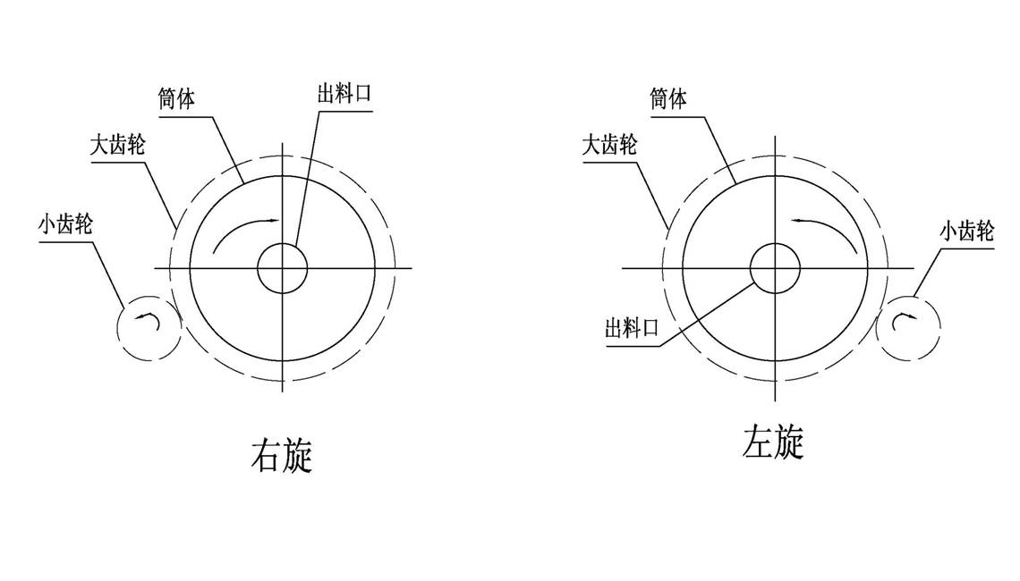 有許多客戶經(jīng)常會問,怎么才能正確的判斷球磨機(jī)運(yùn)轉(zhuǎn)時是左旋還是右旋,今天河南豫暉礦山機(jī)械有限公司技術(shù)人員以圖為為例為大家解這個因惑:要想判斷球磨機(jī)是左旋還是右旋,要從球磨機(jī)出料口(靠近大齒輪一端)向進(jìn)料口方向看,筒體逆時針旋轉(zhuǎn)為左旋,筒體順時針旋轉(zhuǎn)為右旋;在布置圖上,左旋布置時,傳動部分(過橋)在筒體右側(cè);右旋布置時,傳動部分(過橋)在筒體左側(cè)。如下圖所示:
