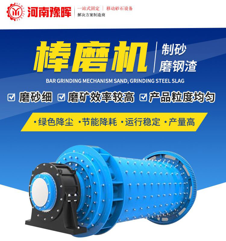 棒磨機是由筒體內所裝載研磨體為鋼棒而得名的,棒磨機一般是采用濕式溢流型,可作為一級開路磨礦使用,廣泛用在人工石砂、選礦廠、化工廠電力部門的一級磨礦。